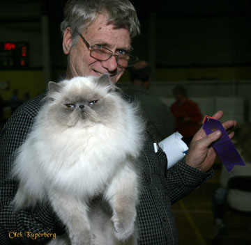 Mewsetta, daughter of Simon x Olivia, is a bluepoint himalayan who arrived December 2006 and is now a grand champion!